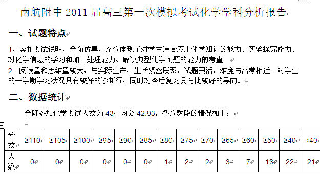 百度:江苏省南京市2011届高三一模化学学科分析报告南航附中