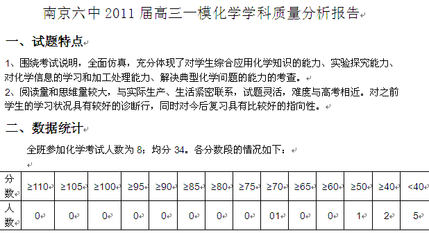 百度:江苏省南京市2011届高三一模化学学科分析报告南京六中