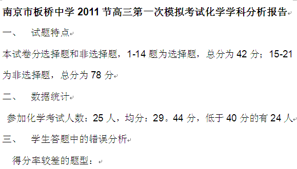 百度:江苏省南京市2011届高三一模化学学科分析报告南京市板桥中学