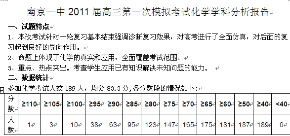 百度:江苏省南京市2011届高三一模化学学科分析报告南京一中