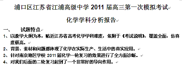 有道:江苏省南京市2011届高三一模化学学科分析报告浦口区江苏省江浦高级中学