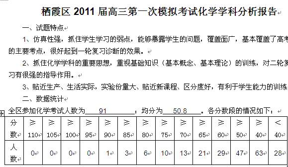 百度:江苏省南京市2011届高三一模化学学科分析报告栖霞区