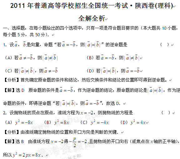 百度:2011年高考试题——数学理(陕西卷)解析版