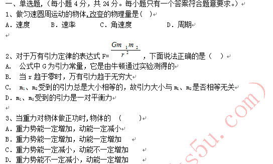 百度:广东省鼎湖中学2010-2011学年高一物理必修2期末训练题