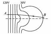 1 (2011江苏经8题).一粒子从a点射入电场,从b点射出,电场的等势面和粒子的运动轨迹如图所示,图中左侧前三个等势面彼此平行,不计粒子的重力。下列说法正确的有