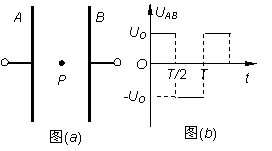 3(2011安徽第20题).如图(a)所示,两平行正对的金属板a、b间加有如图(b)所示的交变电压,一重力可忽略不计的带正电粒子被固定在两板的正中间p处。若在t0时刻释放该粒子,粒子会时而向a板运动,时而向b板运动,并最终打在a板上。则t0可