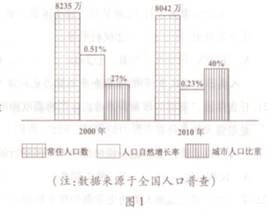 图1 为我国西部某省人口数据统计图。近年全国人口自然增长率为0.5%左右。据此回答1-2题。