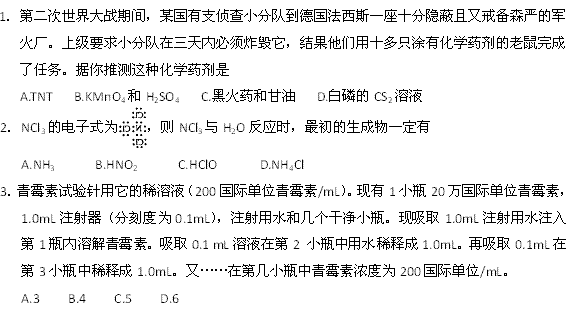 百度:高一化学暑假作业2