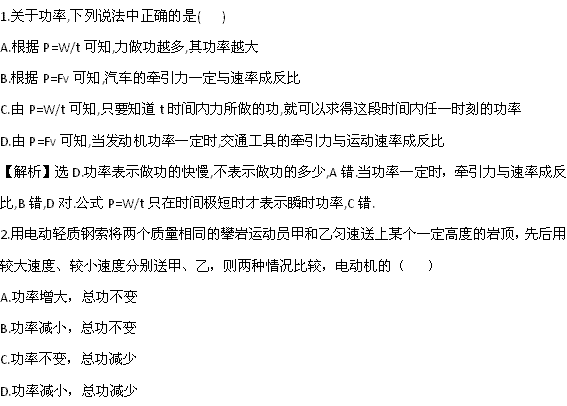 百度:2011年高一物理《功率》暑期章节练(鲁科版必修二)