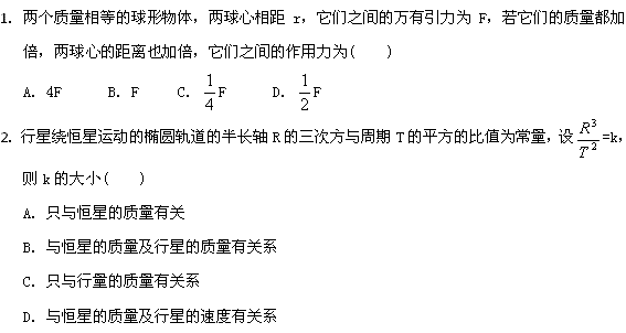 百度:2011年高一物理《万有引力》暑期章节练(鲁科版必修2)