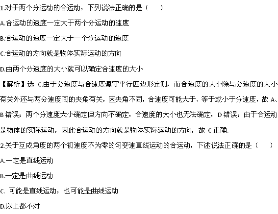 百度:2011高一物理暑期精练精析:3-1《运动的合成与分解》(鲁科版必修二)