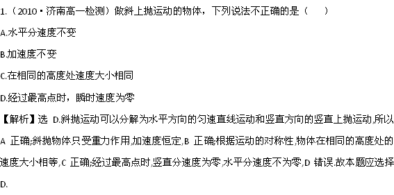 谷歌:2011高一物理暑期精练精析:3-4《斜拋运动》(鲁科版必修二)
