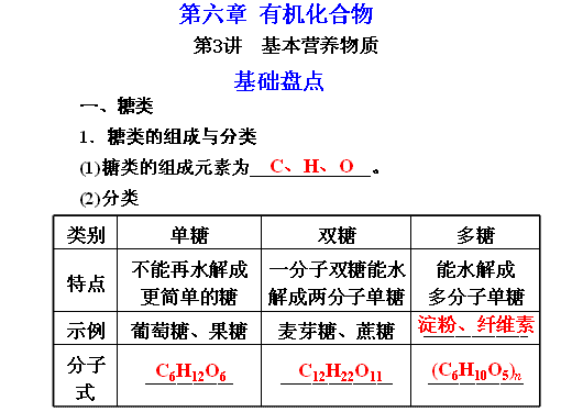 有道:【人教版化学】步步高2012版大一轮复习课件:第六章 第3讲 基本营养物质