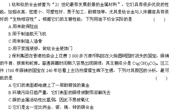 百度:【人教版化学】步步高2012版大一轮复习练习:第三章 第5讲 铜及金属材料