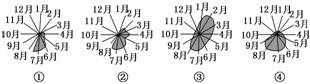下列四图是我国四条河流各月平均流量示意图,阴影部分为径流量。读图,完成1~3题。