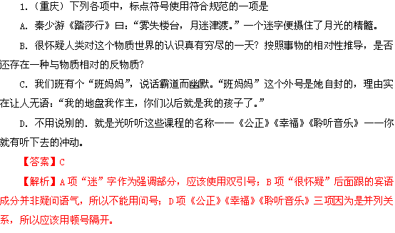 百度:2011年高考试题解析语文分项版之专题3 正确使用标点符号