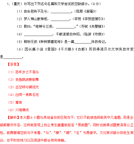 有道:2011年高考试题解析语文分项版之专题10 文学常识、名言名篇