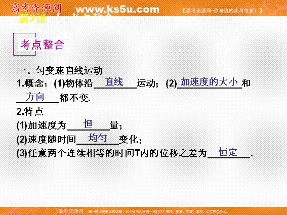 有道:2012届高考物理一轮复习精品课件(福建专版):第2讲 匀变速直线运动的规律及应用