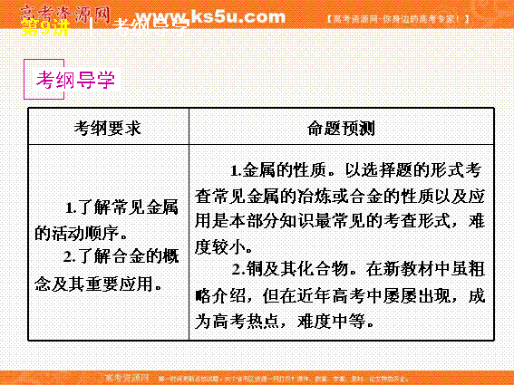 有道:2012届高考化学一轮复习精品课件(课标人教版):第9讲 用途广泛的金属材料