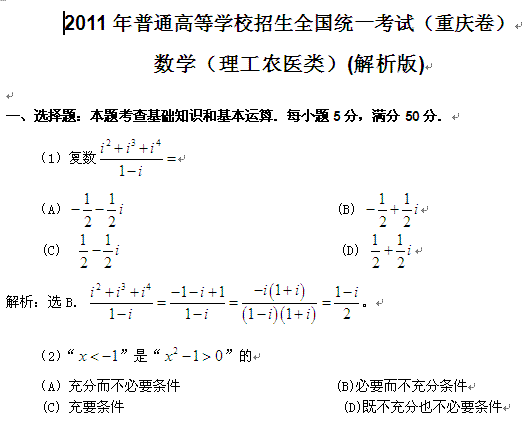 百度:2011年高考试题——数学理(重庆卷)解析版