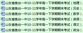 百度:山东省鱼台一中10-11学年高一下学期期末考试(文科6份)