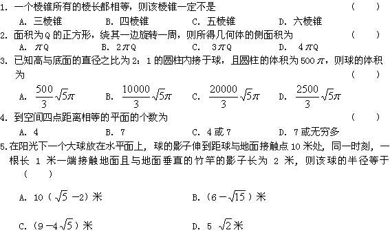 百度:11-12学年高一数学:人教B版必修二立体几何综合测试 2