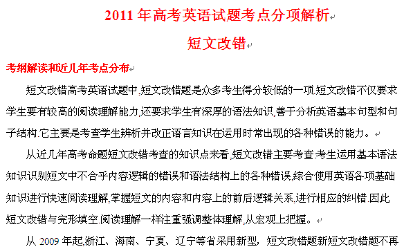 百度:2011年高考真题解析英语分项版汇编:专题12短文改错书面表达