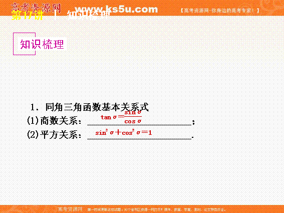 谷歌:2012届高考数学(理)一轮复习精品课件:第17讲 同角三角函数的关系和诱导公式(人教B版)