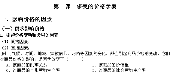 百度:2011高一政治学案:1.2多变的价格(新人教版必修1)