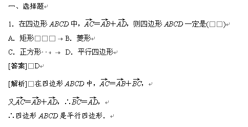谷歌:高一数学必修4(新人教)课后强化训练(含详解):2.2 第1课时