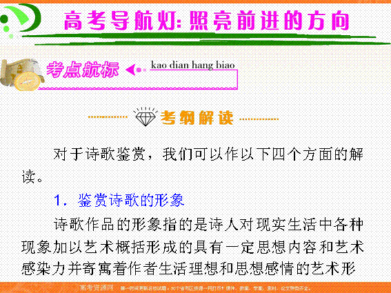 百度:2012届高考语文广东粤教版学海导航新课标高中总复习(第1轮)课件:第2部分第6节 古代诗歌鉴赏(上)