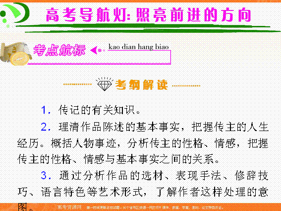 谷歌:2012届高考语文广东粤教版学海导航新课标高中总复习(第1轮)课件:第6部分第3节 实用类文本阅读之一:传记阅读(上)