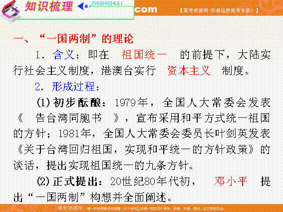 有道:2012届高考历史福建人民版学海导航新课标高中总复习(第1轮)课件:必修1第3单元考点2“一国两制”的伟大构想及其实践