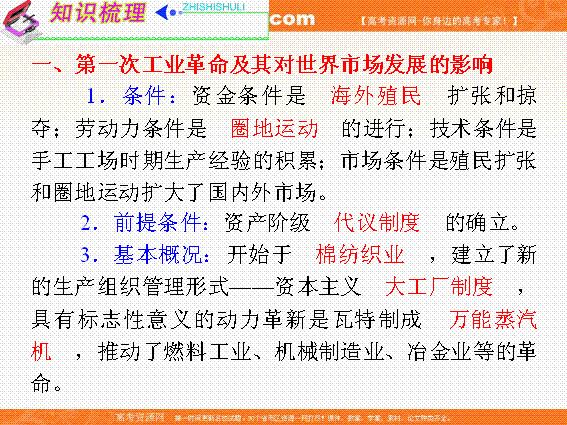 谷歌:2012届高考历史福建人民版学海导航新课标高中总复习(第1轮)课件:必修2第3单元考点2两次工业革命与走向整体的世界