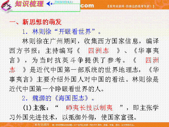 百度:2012届高考历史福建人民版学海导航新课标高中总复习(第1轮)课件:必修3第2单元考点1近代中国思想解放的潮流