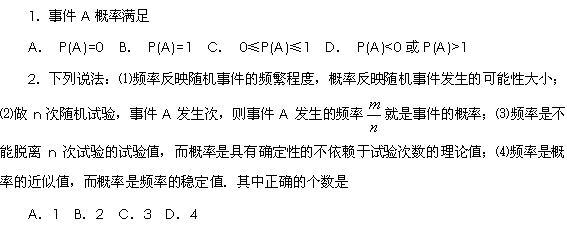 百度:2011年高二数学测试:3.2.2《概率的一般加法公式(选学)》(新人教B版必修3)