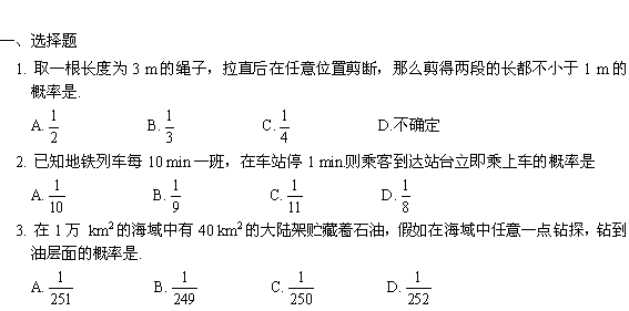 谷歌:2011年高二数学测试:3.3.1《几何概型》(新人教B版必修3)