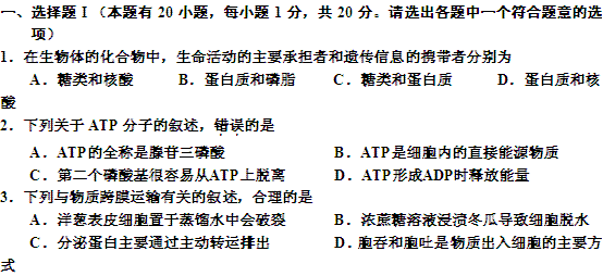 百度:浙江省嘉兴市10-11学年高二下学期期末试题生物