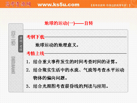 有道:2012届高考地理三维设计一轮复习课件:第一部分 第一章 第二讲 地球的运动(一)——自转