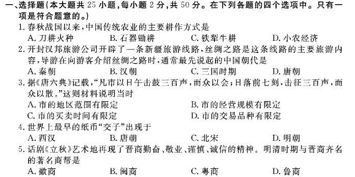 百度:【KS5U独家】河南省开封市10-11学年度高一下学期期末调研考试PDF版(历史)