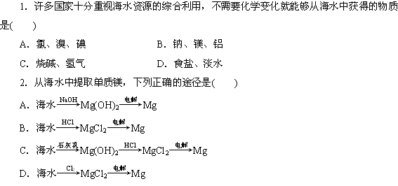有道:广东地区高考化学一轮复习习题集锦:资源综合利用 环境保护