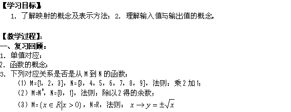 谷歌:江苏海门中学2012届高中数学(必修1)学案:§2.1.4映射的概念