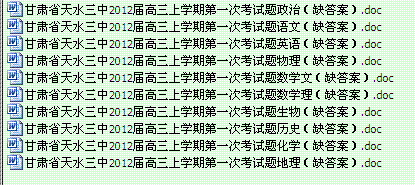 谷歌:甘肃省天水三中2012届高三上学期第一次考试题(全科10份)打包下载!(缺答案)