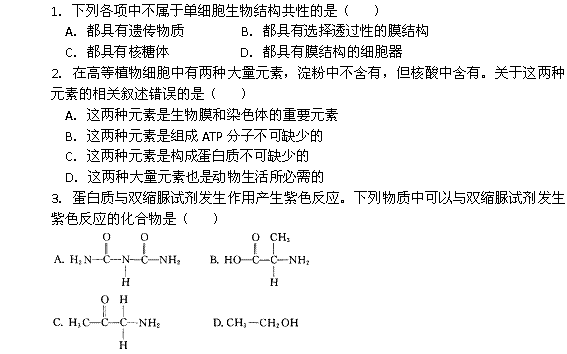 谷歌:安徽省泗县双语中学2012届高三摸底考试(生物)