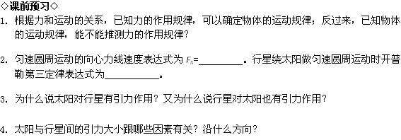 有道:2011年高一物理学案:6.2《太阳与行星间的引力》(新人教版必修2)