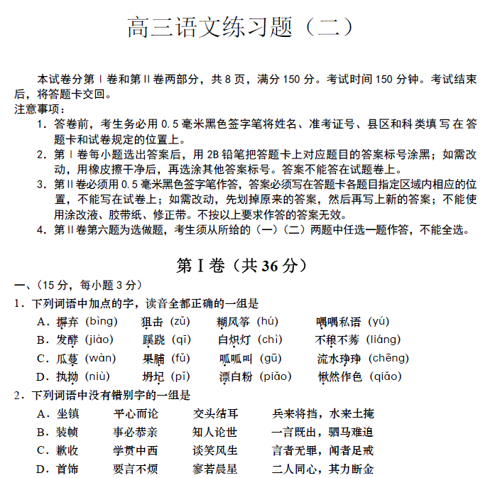 百度:山东省青岛市2011年高考模拟练习题(二)(语文)PDF版