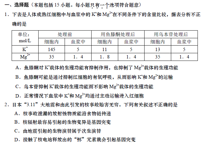 百度:山东省青岛市2011年高考模拟练习题(二)(理综)PDF版