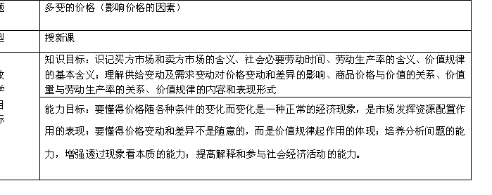 2011高一政治教案:2.1影响价格的因素(新人教版必修1)