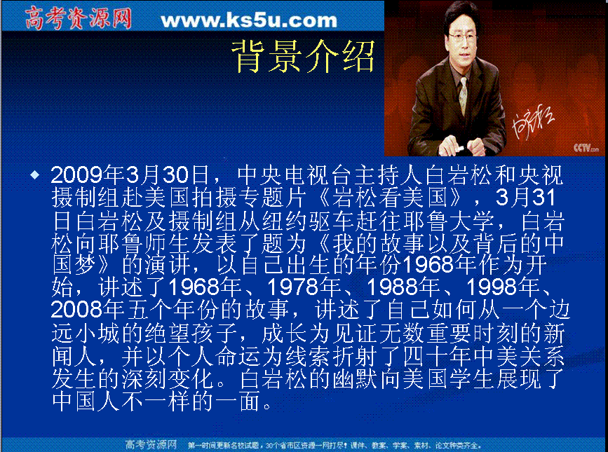 谷歌:2011年高一语文课件 1.3《我的故事以及背后的中国梦》(粤教版必修1)