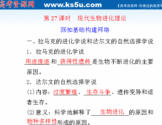 有道:2012届高三生物步步高一轮复习课件(人教版):第7单元 第27课时现代生物进化理论